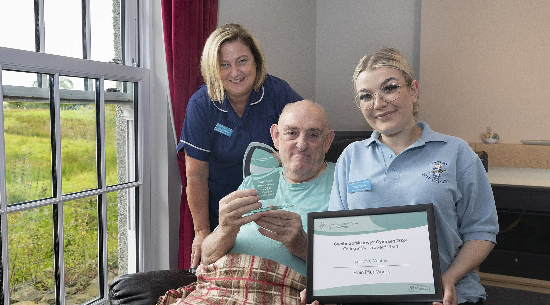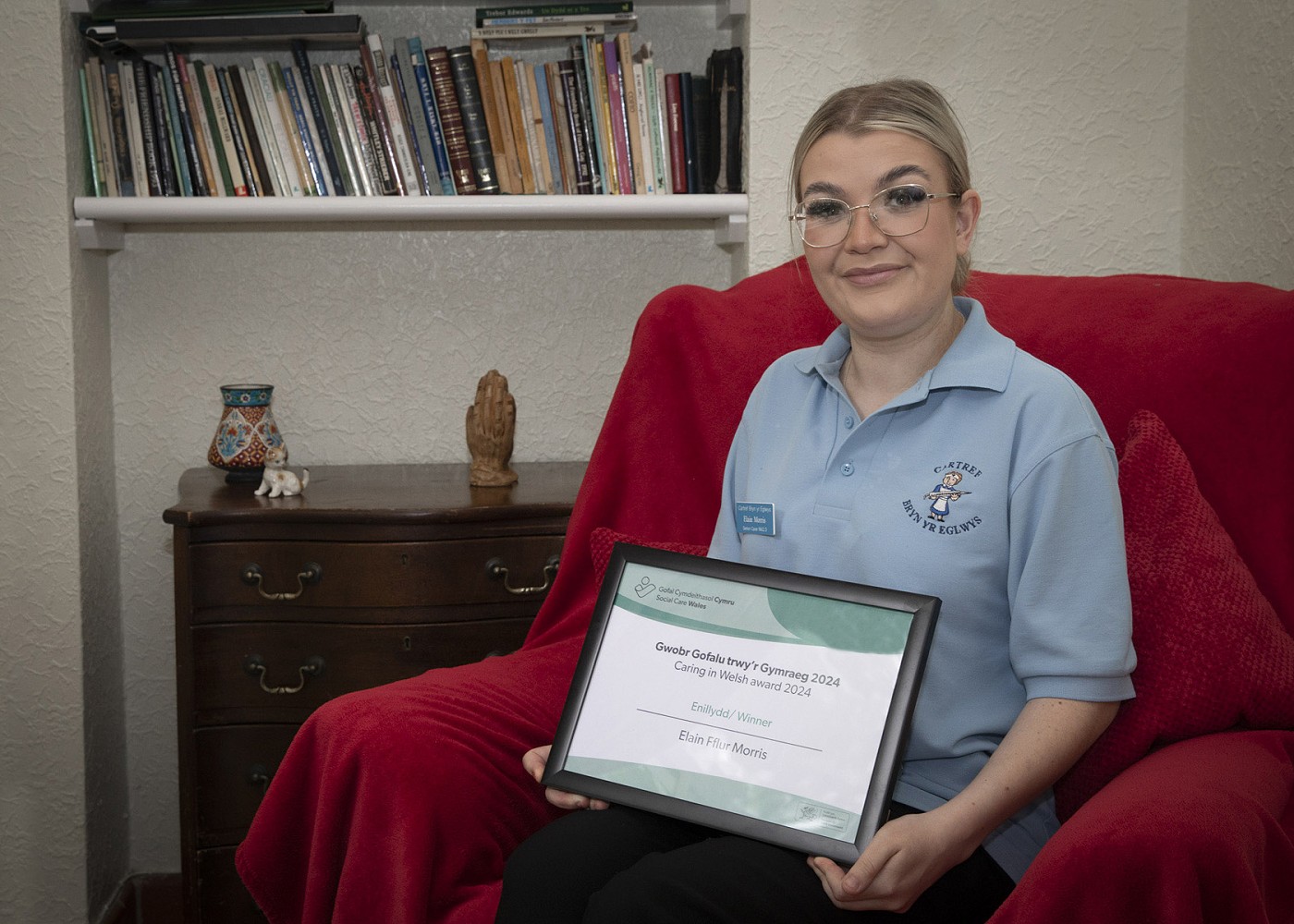 Heddiw, cafodd Elain Fflur Morris, uwch weithiwr gofal yng Nghartref Bryn yr Eglwys yng Nghonwy, ei henwi fel enillydd gwobr Gofalu yn y Gymraeg 2024 mewn digwyddiad yn Eisteddfod Genedlaethol Rhondda Cynon Taf.